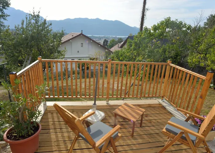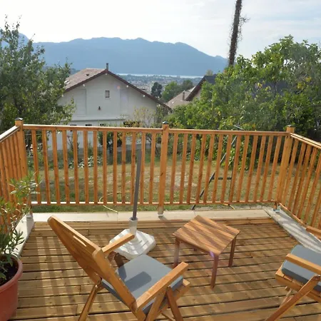 Studio De La Grimotiere 艾克斯莱班位于Chalet Charcot旁边并面朝花园. 这套公寓距离艾克斯莱班的Casino Grand Cercle 赌场有0.8公里,带有山脉景的露台.